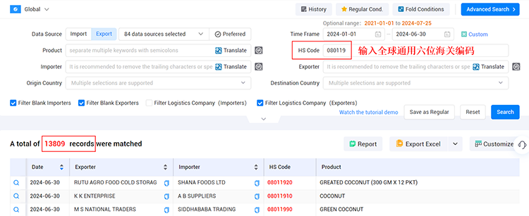 在EVO视讯官网海关数据查询平台中,输入准确的HS Code。如果你不确定要开发的国家,可以使用前6位海关编码进行搜索。前6位编码在全球范围内统一,可以帮助你找到更多的潜在客户。